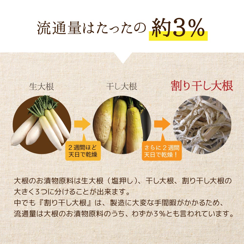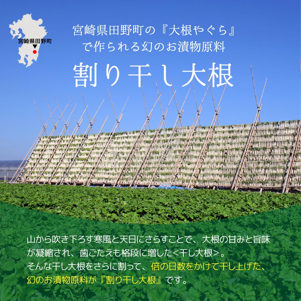 【商品説明】宮崎県産 『割り干しつぼ漬』150g×3袋 原材料 割り干し大根、漬け原材料(果糖ぶどう糖液糖、醤油、昆布、食塩、食酢、発酵調味料、酒精、とうがらし、たんぱく加水分解物(小麦・大豆を含む))/調味料(アミノ酸等)、酸味料、カラメル色素、増粘多糖類、甘味料(甘草、ステビア)、ビタミンB1 内容量 150g×3袋 賞味期限 製造から約120日(未開封の状態) ご使用方法 そのままご飯と一緒に、またお酒のおつまみとしてお召し上がりください。