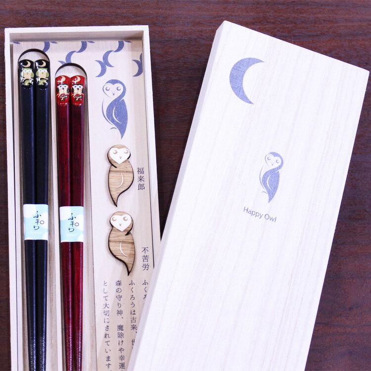 母の日 父の日 ペアギフト 夫婦箸 名入れ おしゃれ 名前入り 名入り 贈り物 ギフト プレゼント 【 天然木 日本製 梟 (ふくろうモチーフ) お月見ふくろう 縁起箸 ペアセット 】 結婚 祝い 一双 大人 実用的 60代 敬老 長寿 木婚式 記念日 内祝い 木製品 専門店