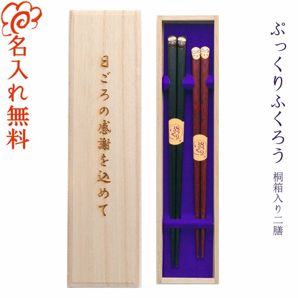 【名入れ 箸】 桐箱入り 夫婦箸 二膳セット ぷっくりふくろう 滑り止め付き/箸 記念品 結婚祝い お箸 名入れ 夫婦 ペア 二膳 記念品/ギフト/プレゼント/贈り物/名入れ無料 桐箱彫刻無料/