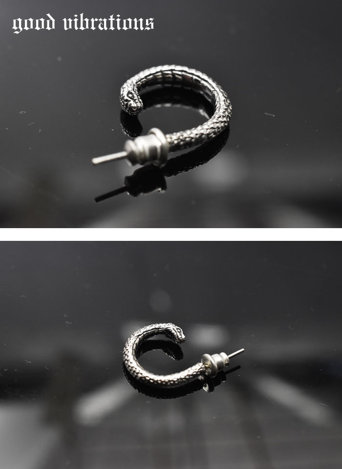 蛇をモチーフにしたgoodvibrations(グッドバイブレーション)のシルバーピアスです。